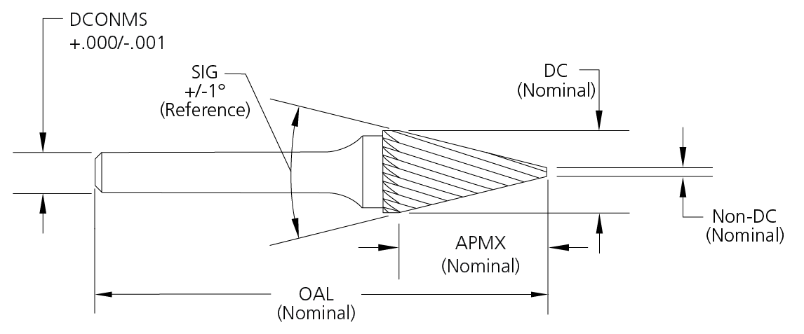 .1250 69130020L3 69829 1/8 1/8 .014 3 7/16 14° SM-42L3 Single Uncoated Straight