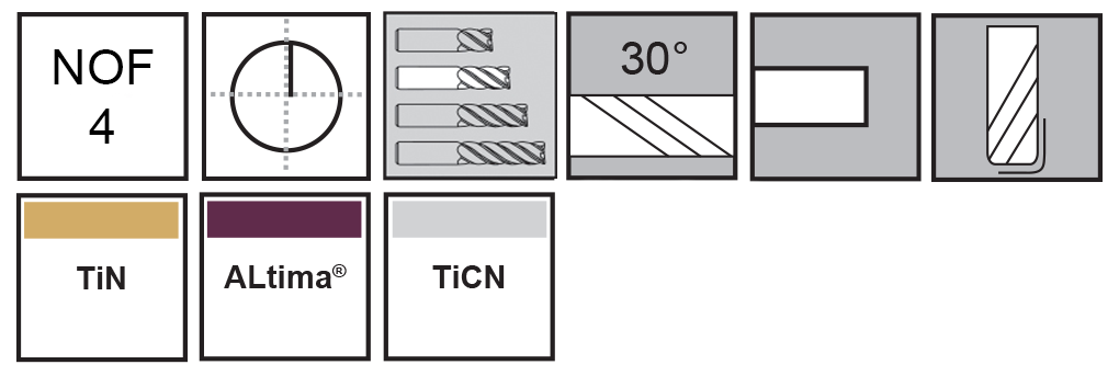 - Uncoated or available with TiN, ALtima® (ALTiN) or TiCN coating T=TiN, A=ALtima® (ALTiN), C=TiCN coated