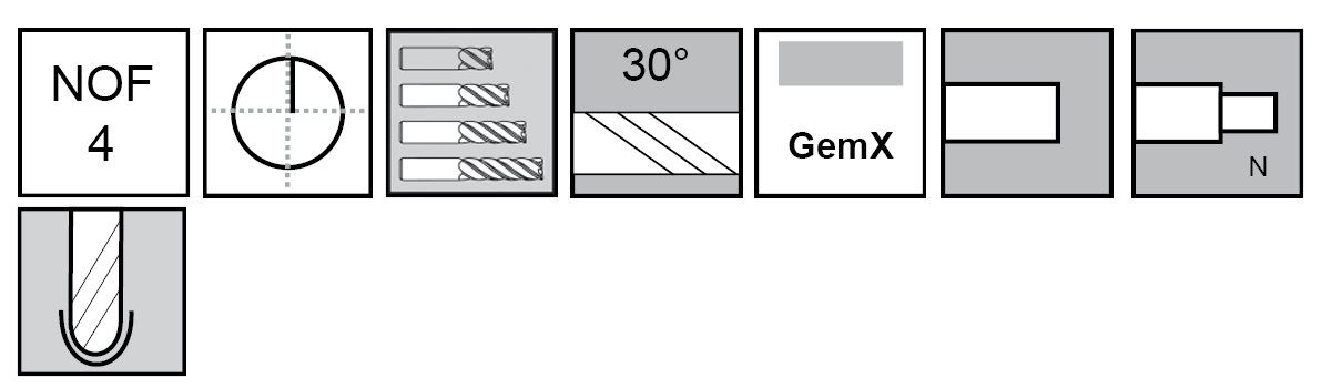 Solid Carbide TuffCut® GX 4 Flute End Mill Ball Nose Gem X Coated. Excellent for high performance milling of graphite and similar materials. Designed for milling fillets or similar rounded corners in the bottom of a cut.