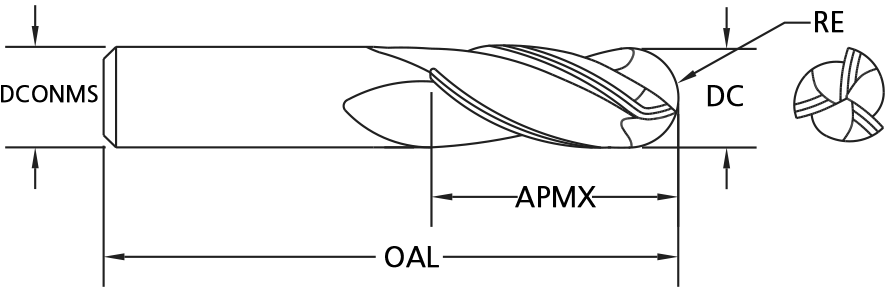 Designed for milling fillets or similar rounded corners in the bottom of a cut. Ideal for most ferrous metal applications.