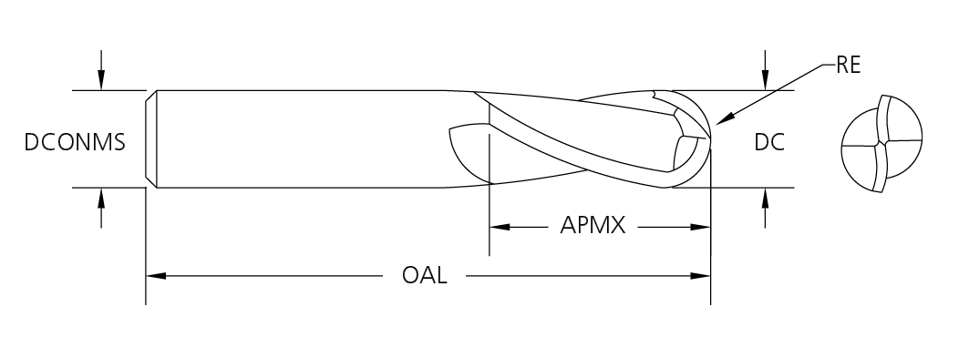 Designed for milling fillets or similar rounded corners in the bottom of a cut. Ideal for most ferrous metal applications.