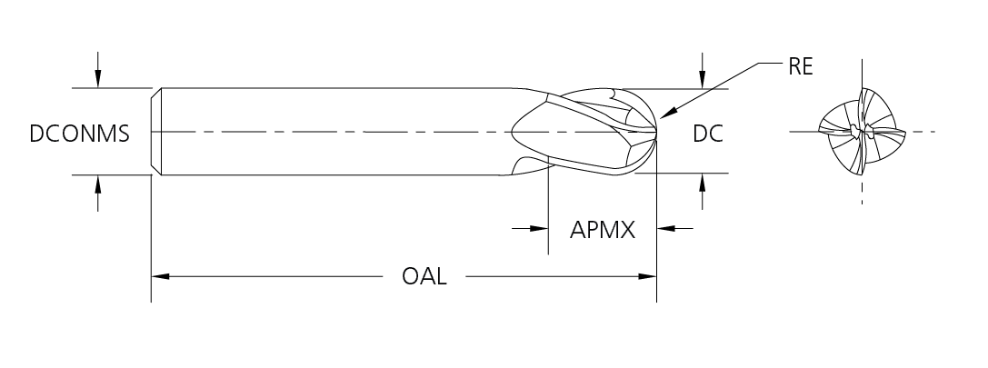 Designed for milling fillets or similar rounded corners in the bottom of a cut. Ideal for most ferrous metal applications