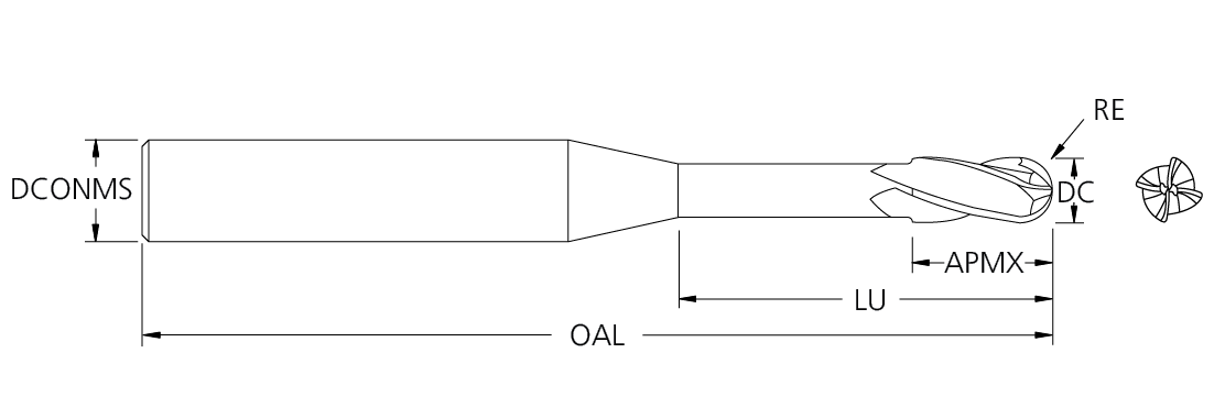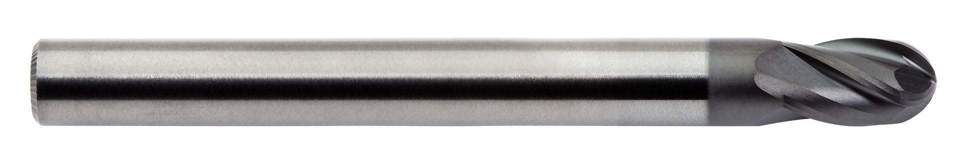Solid Carbide TuffCut® GX 4 Flute End Mill Ball Nose GemX Coated. Designed for milling fillets or similar rounded corners in the bottom of a cut. Excellent for high performance milling of graphite and similar materials.