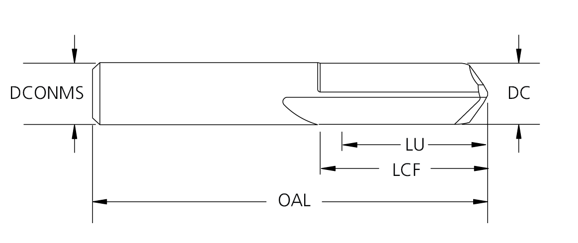 Tool No. EDP Diameter (D/D1) Diameter Dec Shank Diameter (D2) Overall Length (L1) Flute Length (L2) Coating Shank Type