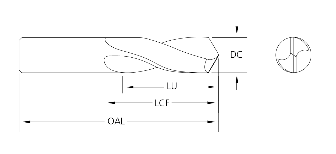 Shorter overhang reduces deflection and vibration and increases drill accuracy and improves tool life. Allows high feed rates with good chip flow. Four facet drill point minimizes drill wander and assures accurately sized holes. For Inch size stub drills, see Series 206.