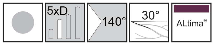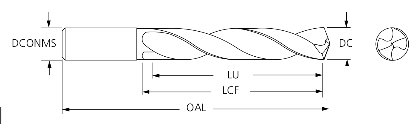 Designed for high performance drilling in a broad range of materials. Low Thrust Point Geometry reduces cutting forces, allowing heavier feed rates and improved tool life. Single Margin Design performs better in High Temp Alloys. The XD Drill is designed for increased edge strength on the point with enhanced post coating surface treatment for improved chip evacuation.