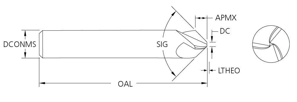 Tool No. EDP Included Angle (A) Shank Diameter (D2) Flute Length (L2) Overall Length (L1) Theoretical Tip Length (L3) Tip Diameter (D3) Coating Shank Type