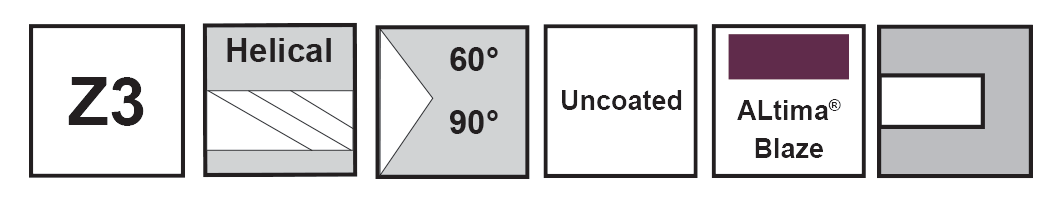 .2500 3HC025001B 35012 60° 1/4 .165 2-1/2 .052 .060 ALtima® Blaze Straight
