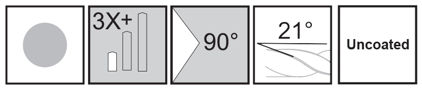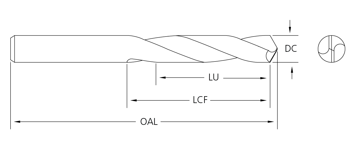 Designed for accurate spotting on NC Machines. Short lengths and no body clearance make this a very rigid tool. Easy to repoint - no web taper. Can be used at higher speeds and feeds, compatible with other carbide tooling.