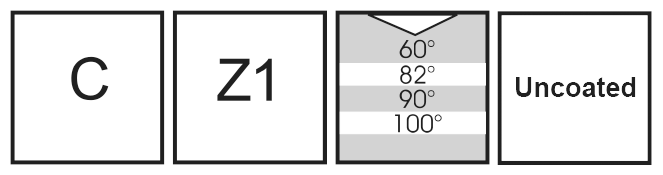 - Included Angle Code (8th character of tool number): 1=60°, 2=82°, 3=90°, 4=100°