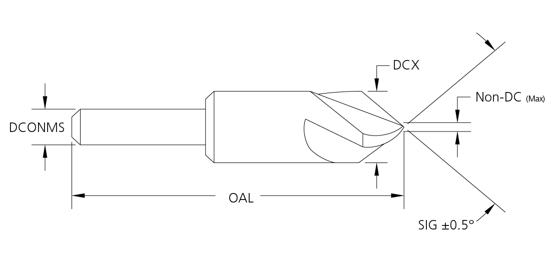 - Included Angle Code (8th character of tool number): 1=60°, 2=82°, 3=90°, 4=100°, 6=120°