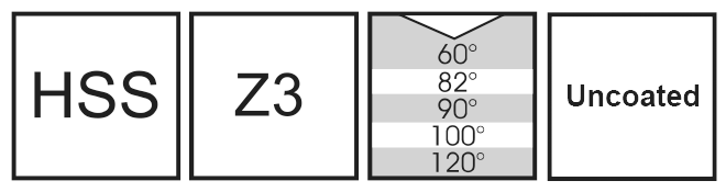 - Available with 60°, 82°, 90°, 100°, and 120° included angles