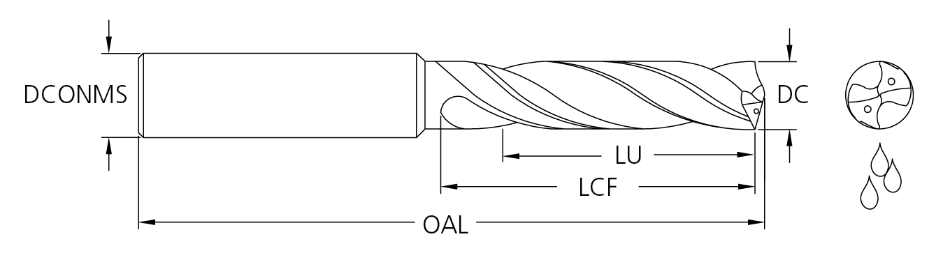 Carbide Coolant Fed Cyclone XD Drill for Aluminum