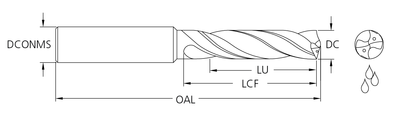 Carbide Coolant Fed Cyclone XD Drill, 5X with Double Margin