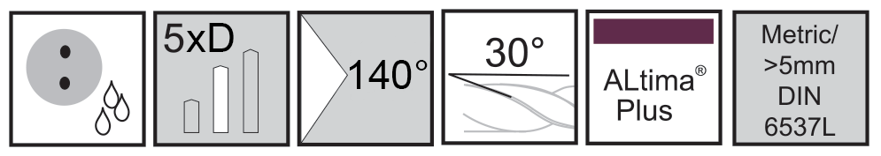 Enhanced double margin design for quicker engagement in the hole, improved hole finish and improved location when drilling cross holes. Enhanced surface finish technology pre coating improves coating adhesion. Enhanced surface finish technology post coating improves chip evacuation. Refined Edge Protection.