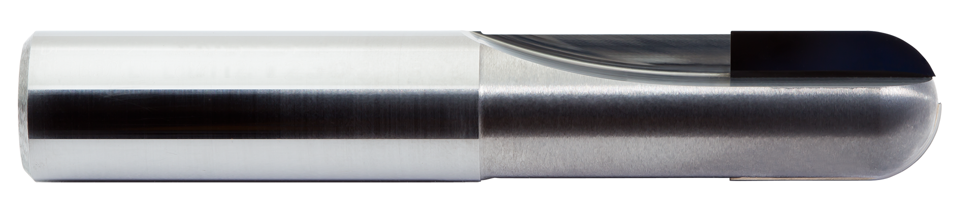 A straight flute PCD tipped ball nose end mill available in 1 or 2 flutes depending on tool size. These end mills combine a PCD tip with a carbide body for maximum rigidity and optimal performance. Offers excellent results in CFRP (Carbon-Fiber-Reinforced Polymer), fiberglass, aluminum and other very abrasive materials.