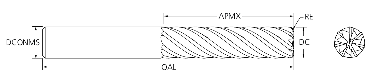 The XV7 was developed for optimal metal removal rates and strength in dynamic milling strategies in tough-to-machine materials such as stainless steels, titanium, and high temp alloys. Offered in a multitude of flute lengths ranging from 1xD up to 4xD, as well as a full range of standard aerospace corner radius options, the XV7 is an extremely versatile offering that is sure to give a boost in both productivity and tool life.